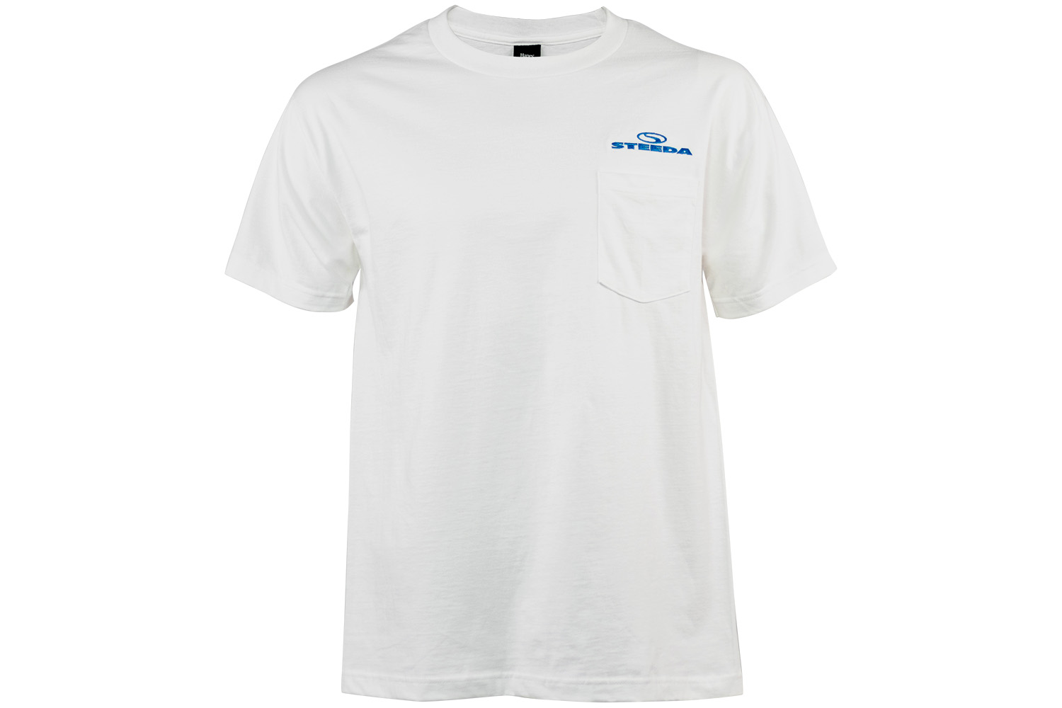 Don't miss out on the chance to sport this iconic White Pocket T-Shirt with a Blue Embroidered Logo, exclusively available on Steeda's website. Order yours today and showcase your love for performance vehicles with pride!