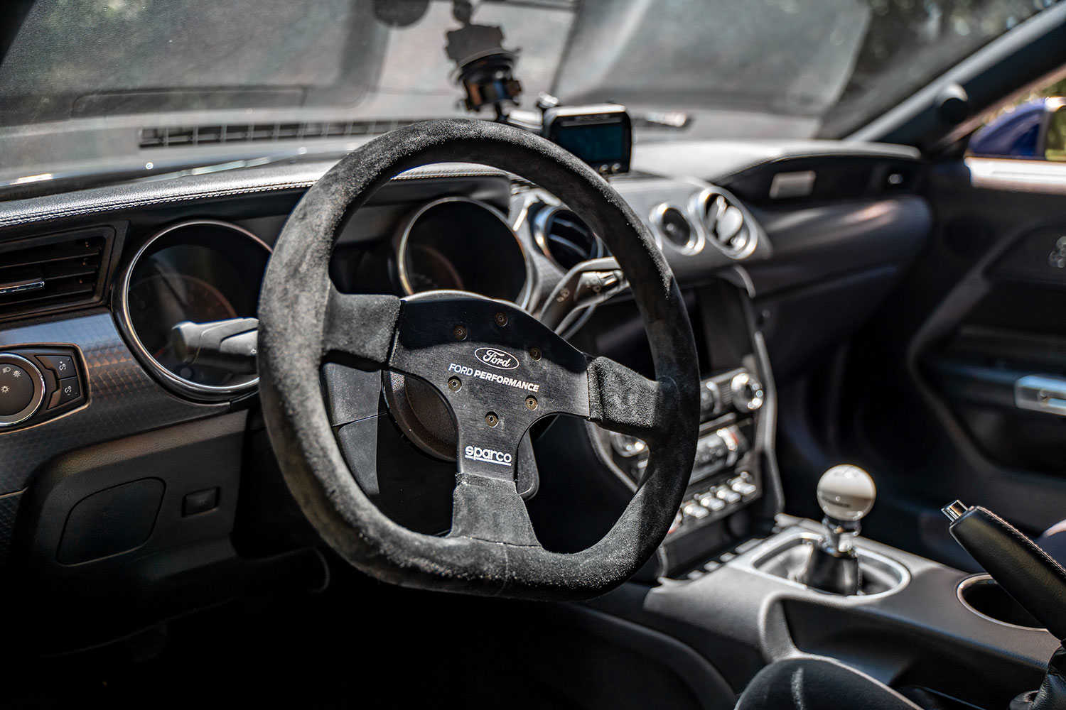 Taylor came in to fit his Kona Blue Mustang GT with a new Magnaflow Competition Cat-Back Exhaust,Steeda Calibration, new Hoosier tires, and Apex wheels to pair with his already Steeda-modified suspension. After having thought the car would be just a fun car to drive with basic mods, going full-bore on his TT3 build and we are proud to be a part of his new racing setup. With these upgrades, as well as potentially improving aerodynamics next, Taylor is pushing to bring his car into time attack someday in the near future.